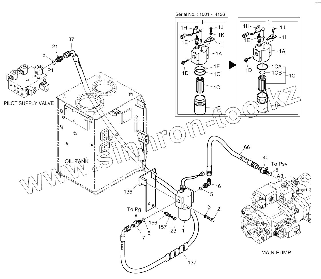 Каталог запасных частей к технике: Doosan SOLAR 210W-V. PILOT PIPING (1)