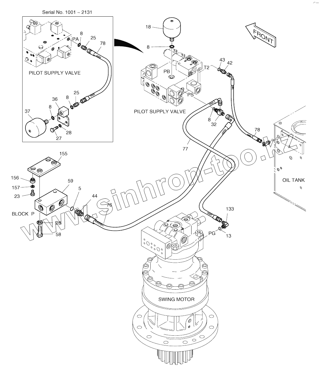 Каталог запасных частей к технике: Doosan SOLAR 210W-V. PILOT PIPING (2)