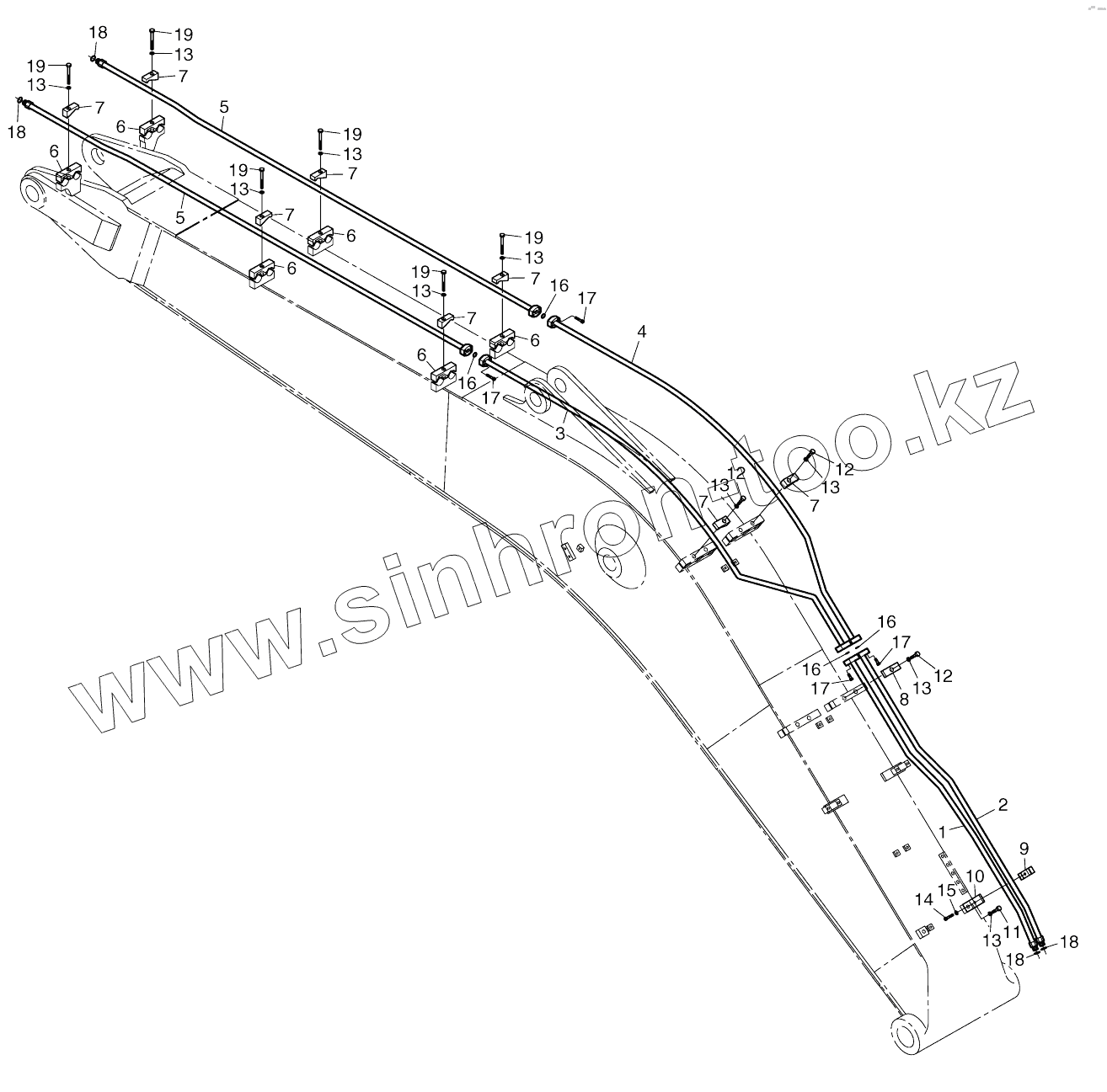Каталог запасных частей к технике: Doosan SOLAR 255LC-V (DI EXP). BOOM PIPING - ROTATING