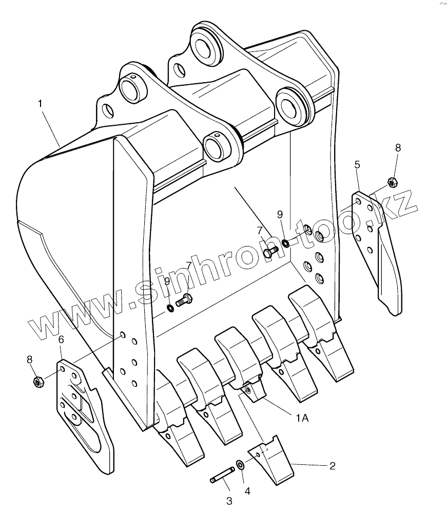 Каталог запасных частей к технике: Doosan SOLAR 255LC-V (DI EXP). BUCKET - 0.81m3