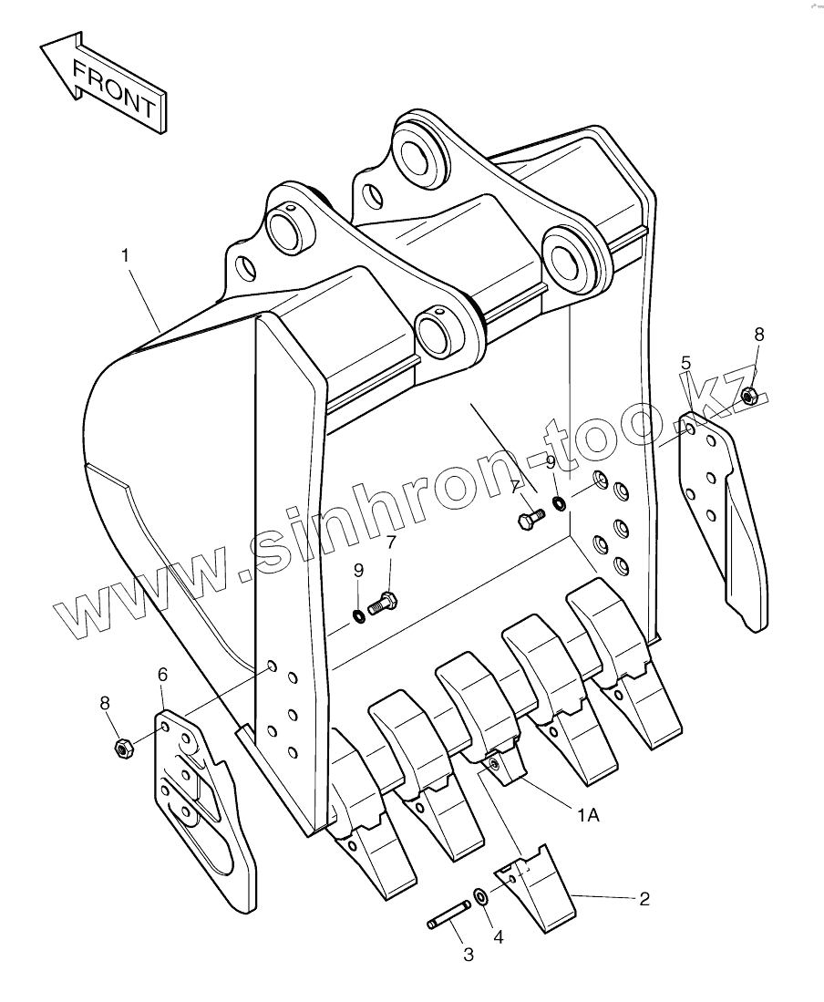 Каталог запасных частей к технике: Doosan SOLAR 255LC-V (DI EXP). BUCKET - 1.10M3