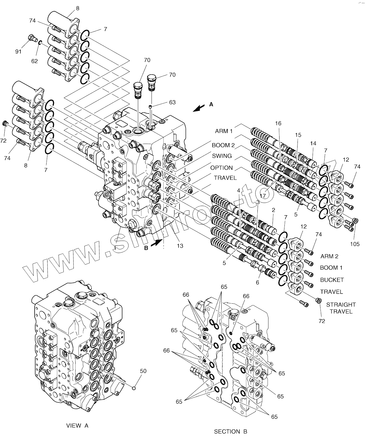 Каталог запасных частей к технике: Doosan SOLAR 255LC-V (DI EXP). CONTROL VALVE (2)