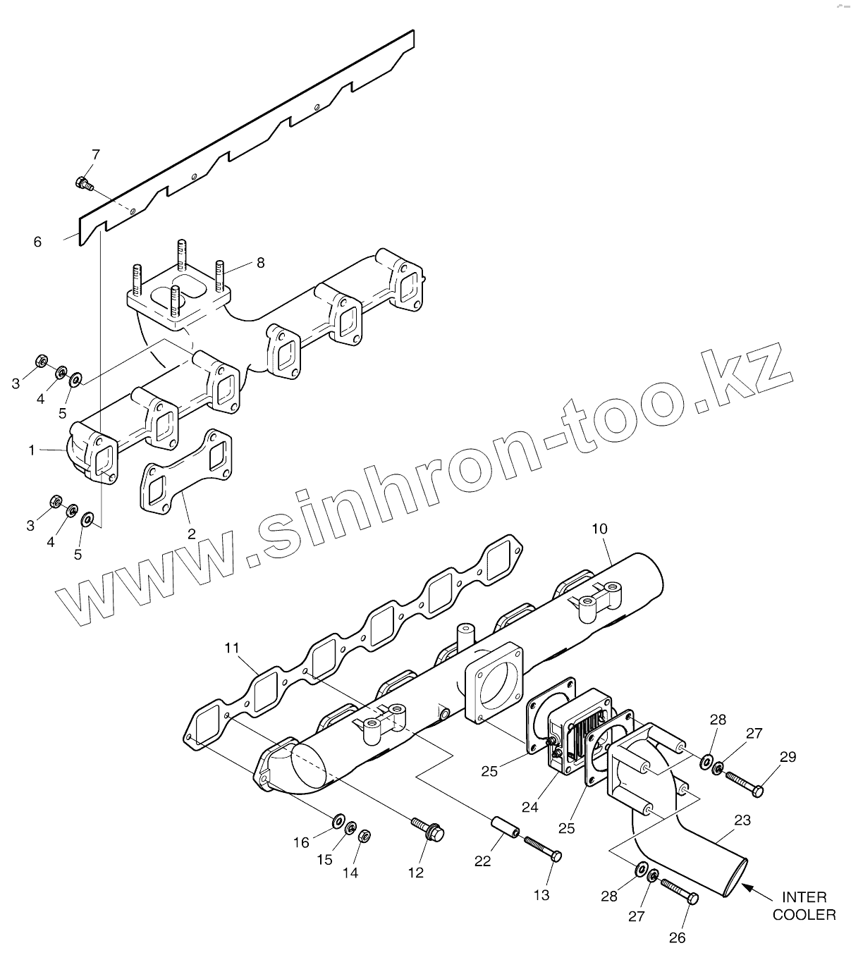 Каталог запасных частей к технике: Doosan SOLAR 255LC-V (DI EXP). INTAKE AND EXHAUST MANIFOLD