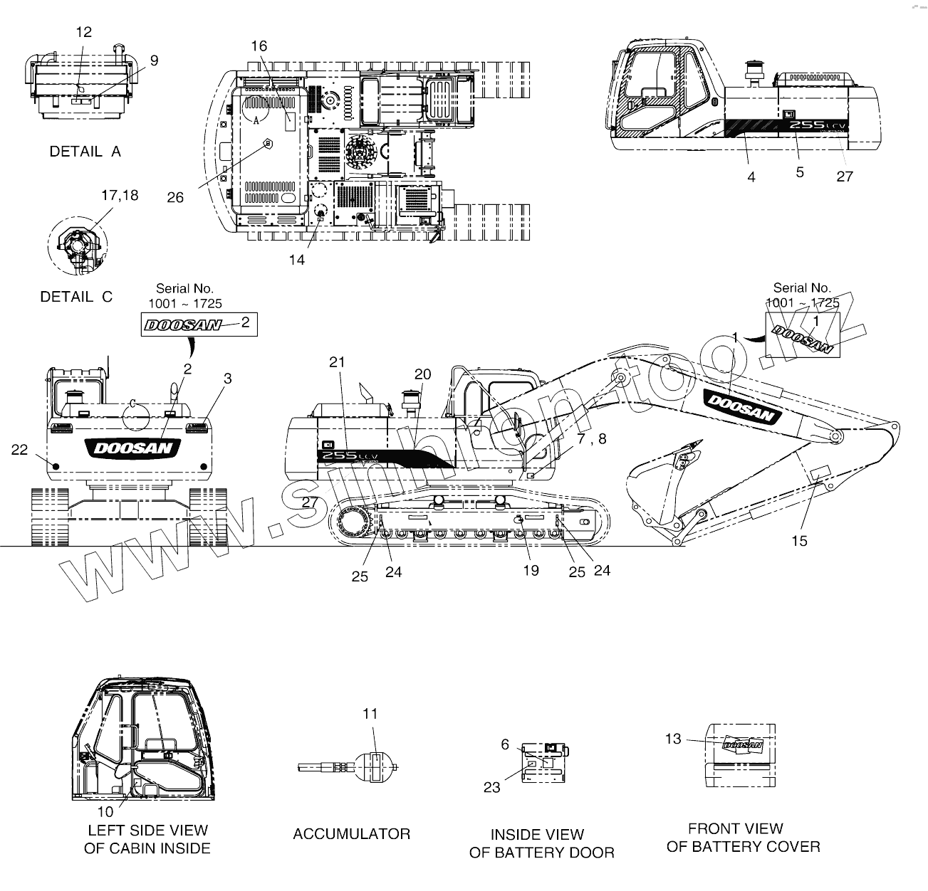 Каталог запасных частей к технике: Doosan SOLAR 255LC-V (DI EXP). NAME PLATE - ENGLISH