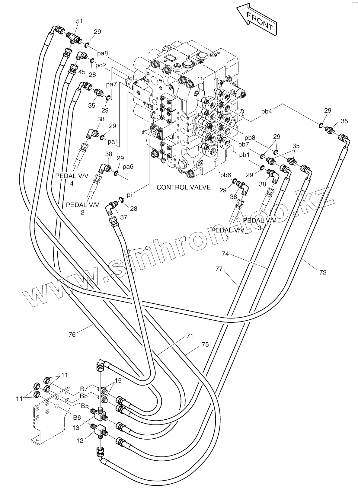 Каталог запасных частей к технике: Doosan SOLAR 255LC-V (DI EXP). PILOT PIPING (4)
