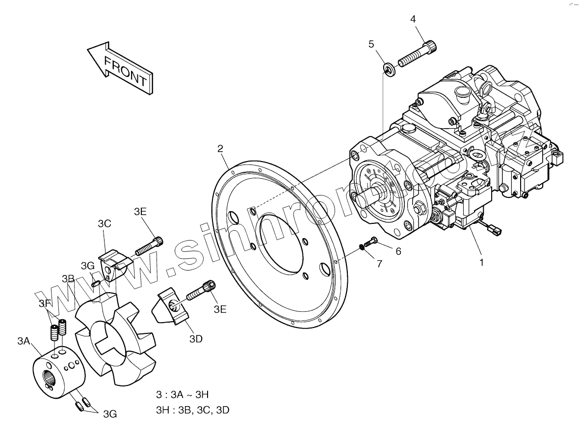 Каталог запасных частей к технике: Doosan SOLAR 255LC-V (DI EXP). PUMP MOUNTING