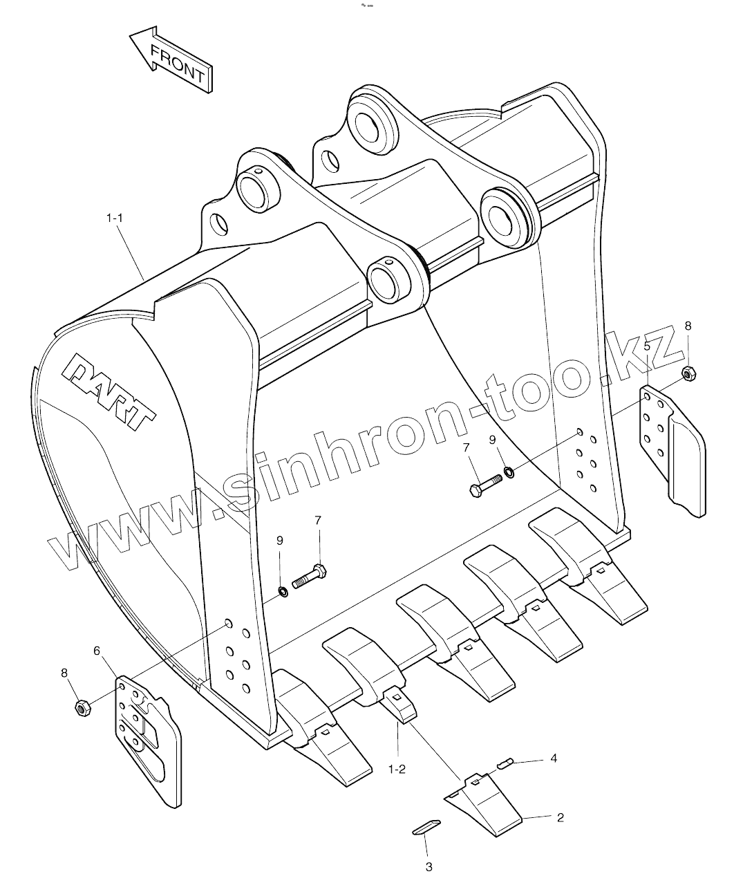 Каталог запасных частей к технике: Doosan SOLAR 420LC-V. BUCKET - 2.07M3 (66") - VERTICAL PIN