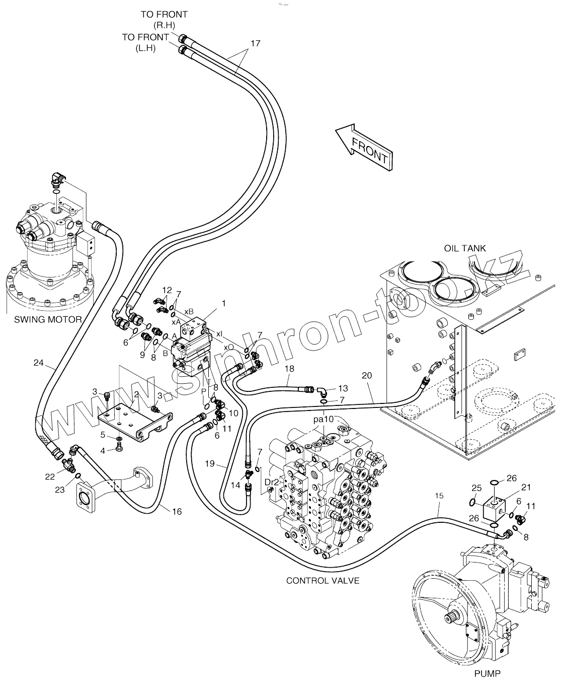Каталог запасных частей к технике: Doosan SOLAR 420LC-V. MAIN PIPING - ROTATION & TILTING