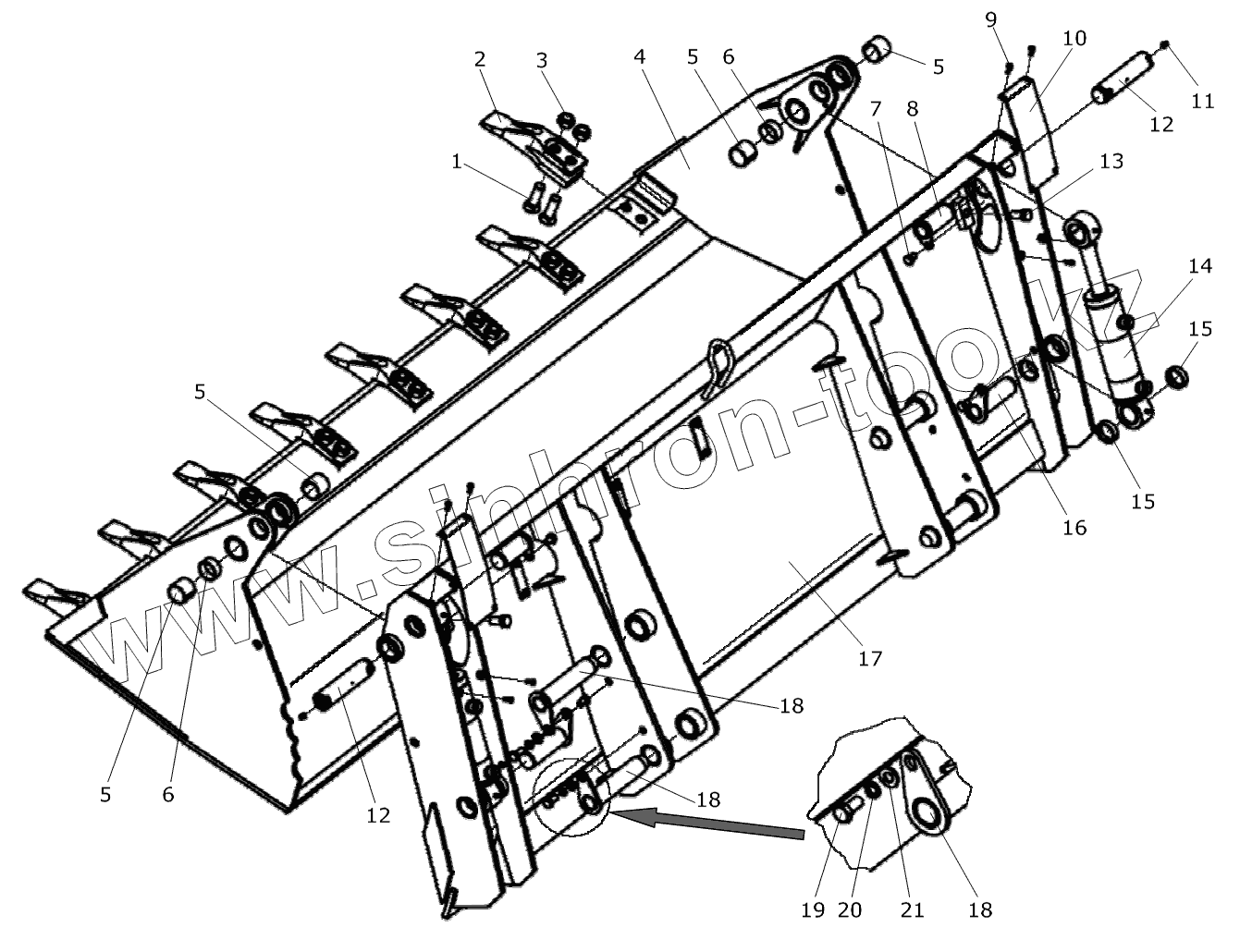 Каталог запасных частей к технике: Дорэлектромаш ДЭМ-114. Ковш с челюстным захватом