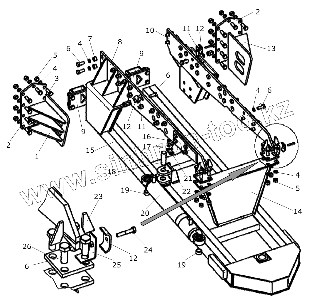Каталог запасных частей к технике: Дорэлектромаш ДЭМ-114. Рама поворотного отвала