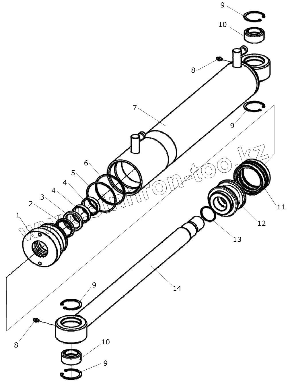 Каталог запасных частей к технике: Дорэлектромаш ДЭМ-114. Цилиндр поворота отвала