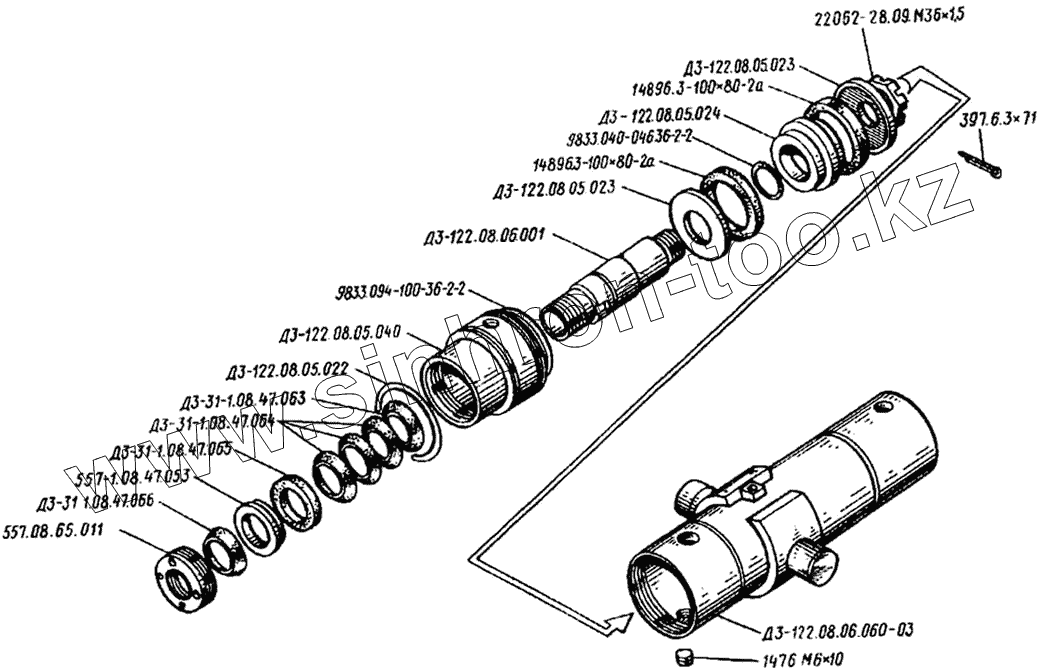 Каталог запасных частей к технике: Дормаш ДЗ-122. Гидроцилиндр ДЗ-122.08.06.050-03