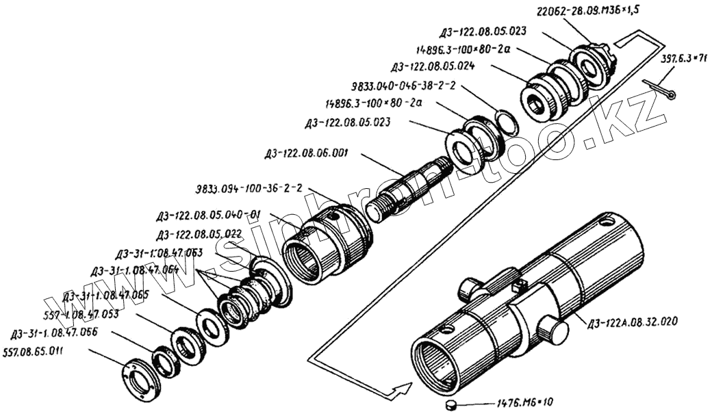 Каталог запасных частей к технике: Дормаш ДЗ-122. Гидроцилиндр ДЗ-122А.08.32.010