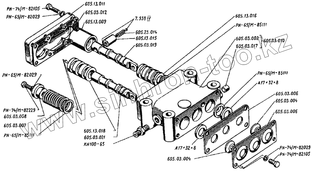 Каталог запасных частей к технике: Дормаш ДЗ-122. Коробка золотниковая У35605.03.000