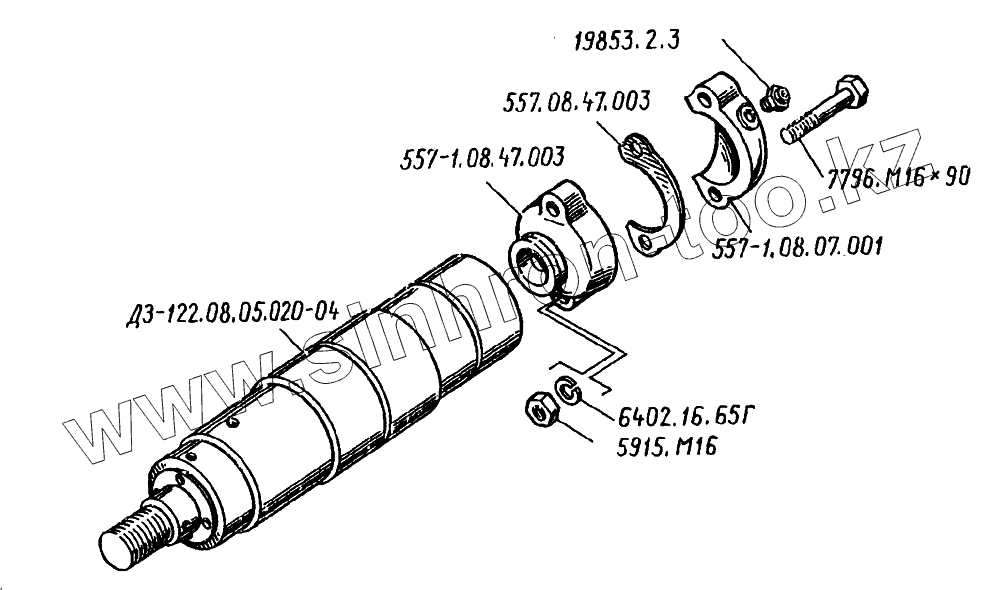 Каталог запасных частей к технике: Дормаш ДЗ-122A-6. Гидроцилиндр ДЗ-122.08.12.000