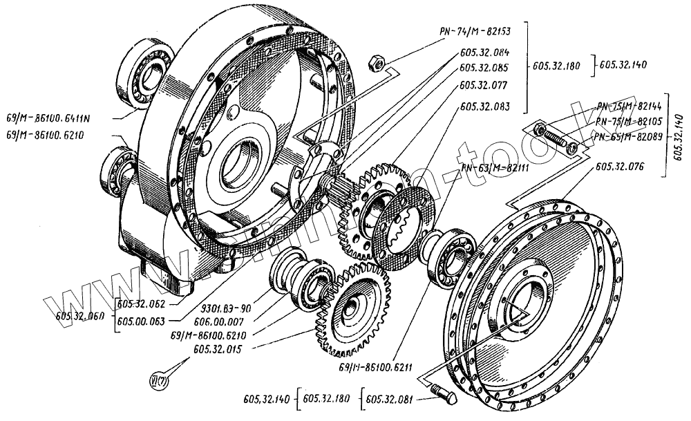Каталог запасных частей к технике: Дормаш ДЗ-122A-6. Коробка передач У35605.32.000
