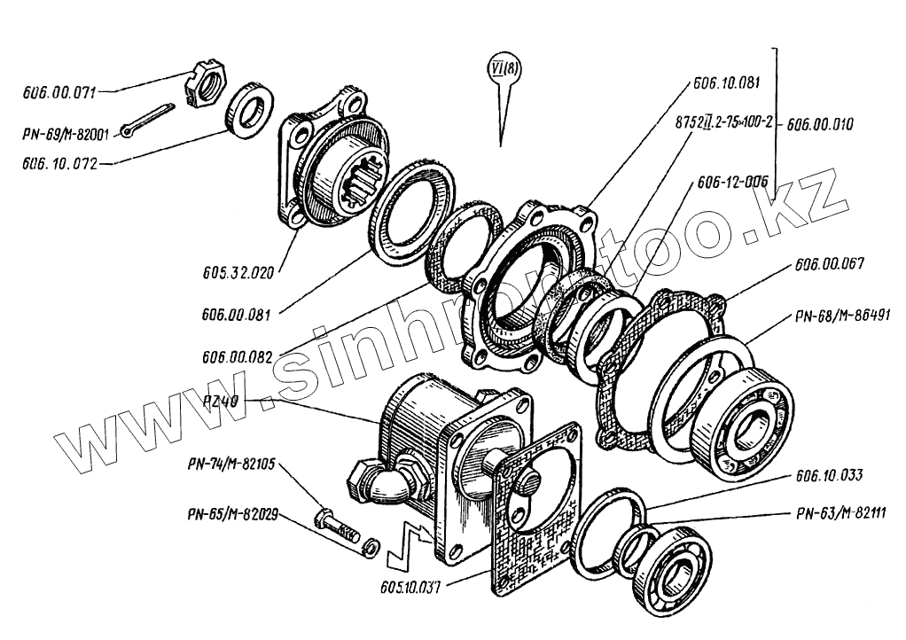 Каталог запасных частей к технике: Дормаш ДЗ-122A-6. Коробка передач У35605.32.000