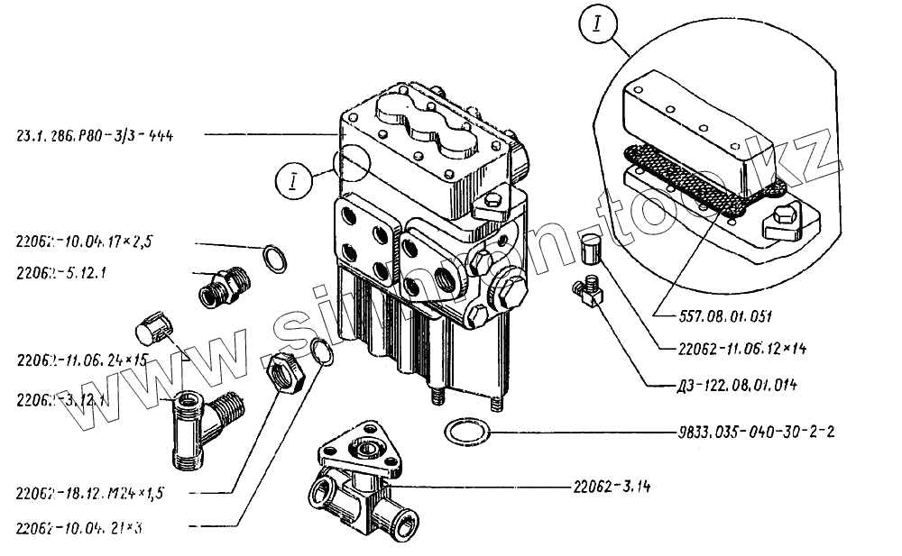 Каталог запасных частей к технике: Дормаш ДЗ-122A-6. Распределитель ДЗ-122.08.01.030