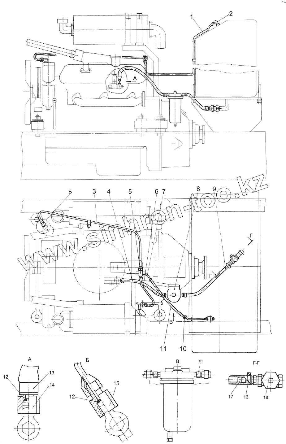 Каталог запасных частей к технике: Дормаш ДЗ-122Б. Топливопроводы ДЗ-122Б-6.10.06.000