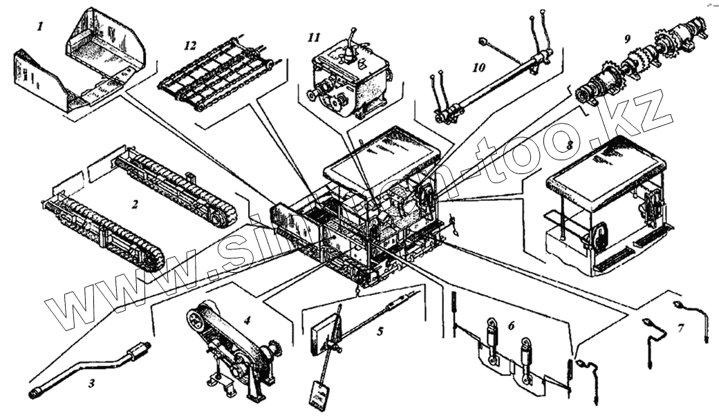 Каталог запасных частей к технике: Дормашина ДС-143А. Расположение агрегатов и узлов на асфальтоукладчике
