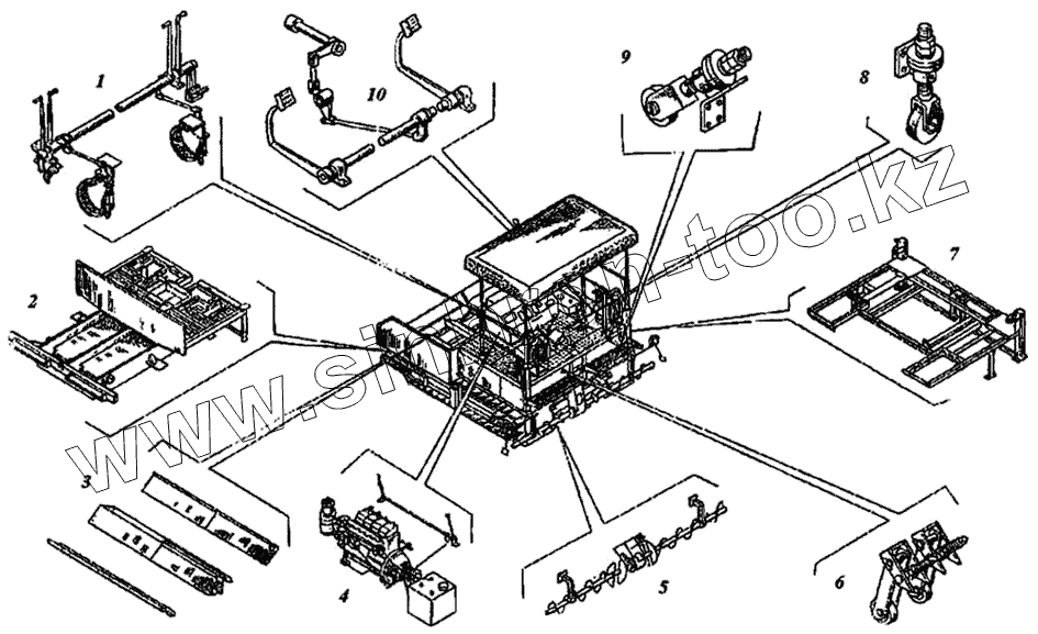 Каталог запасных частей к технике: Дормашина ДС-143А. Расположение агрегатов и узлов на асфальтоукладчике
