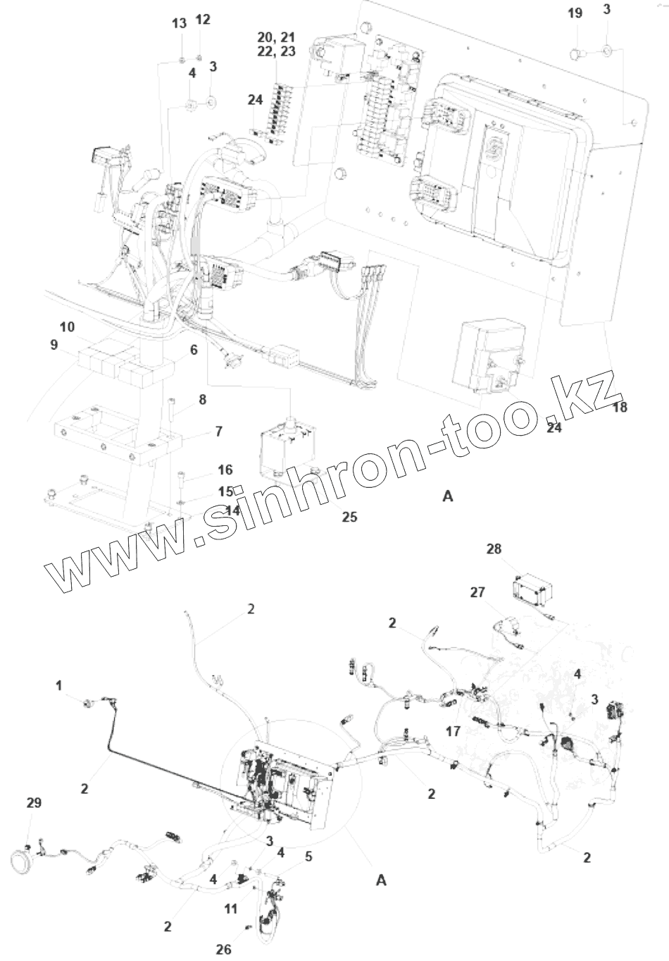 Каталог запасных частей к технике: DYNAPAC CA2500D. Electrical cables, engine - ECU Horn, back-up alarm