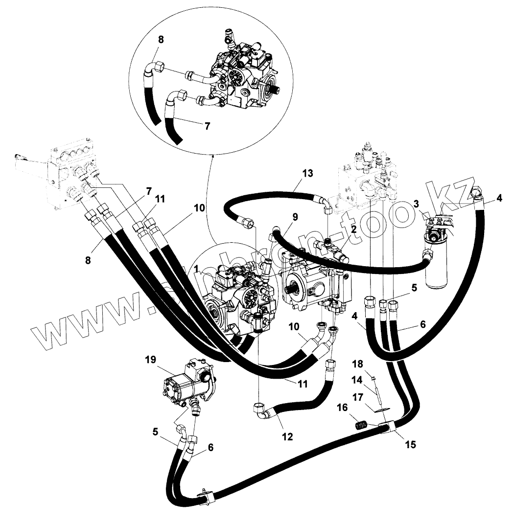 Каталог запасных частей к технике: DYNAPAC CA2500D. Hydraulic system, engine room Adjustable frequency, eco opti