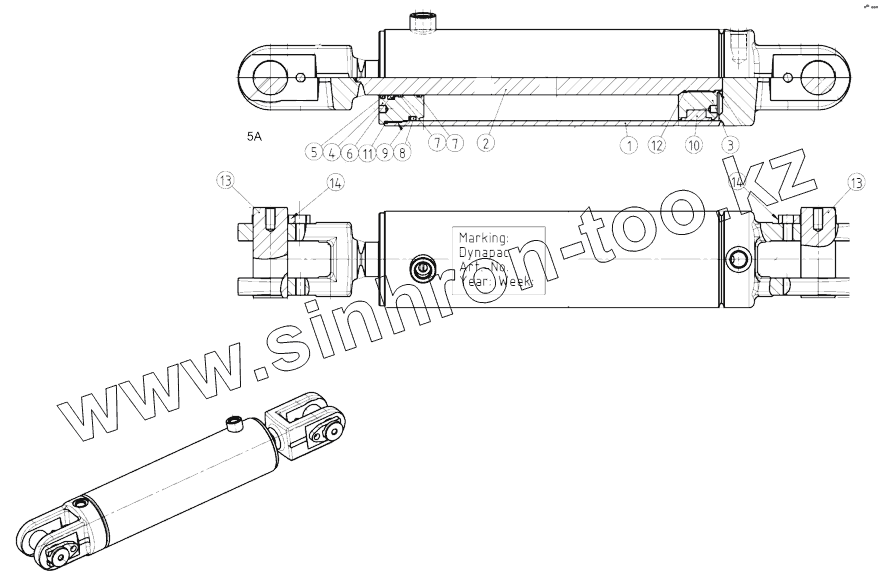 Каталог запасных частей к технике: DYNAPAC CA2500D. 4812121947 Hydraulic cylinder