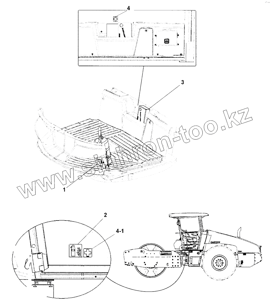 Каталог запасных частей к технике: DYNAPAC CA2500D-PD. Fire extinguisher/First Aid Cushion