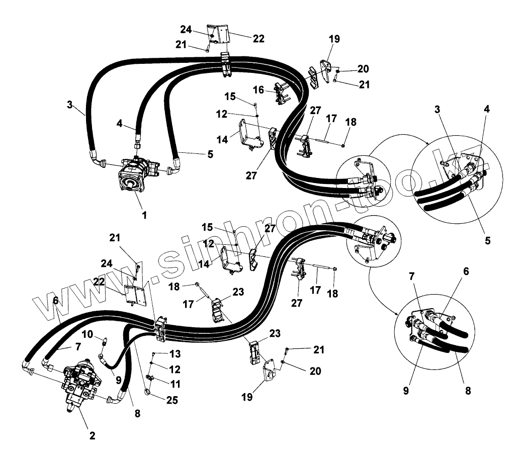Каталог запасных частей к технике: DYNAPAC CA2500D-PD. Hydraulic system, drum Anti-spin system