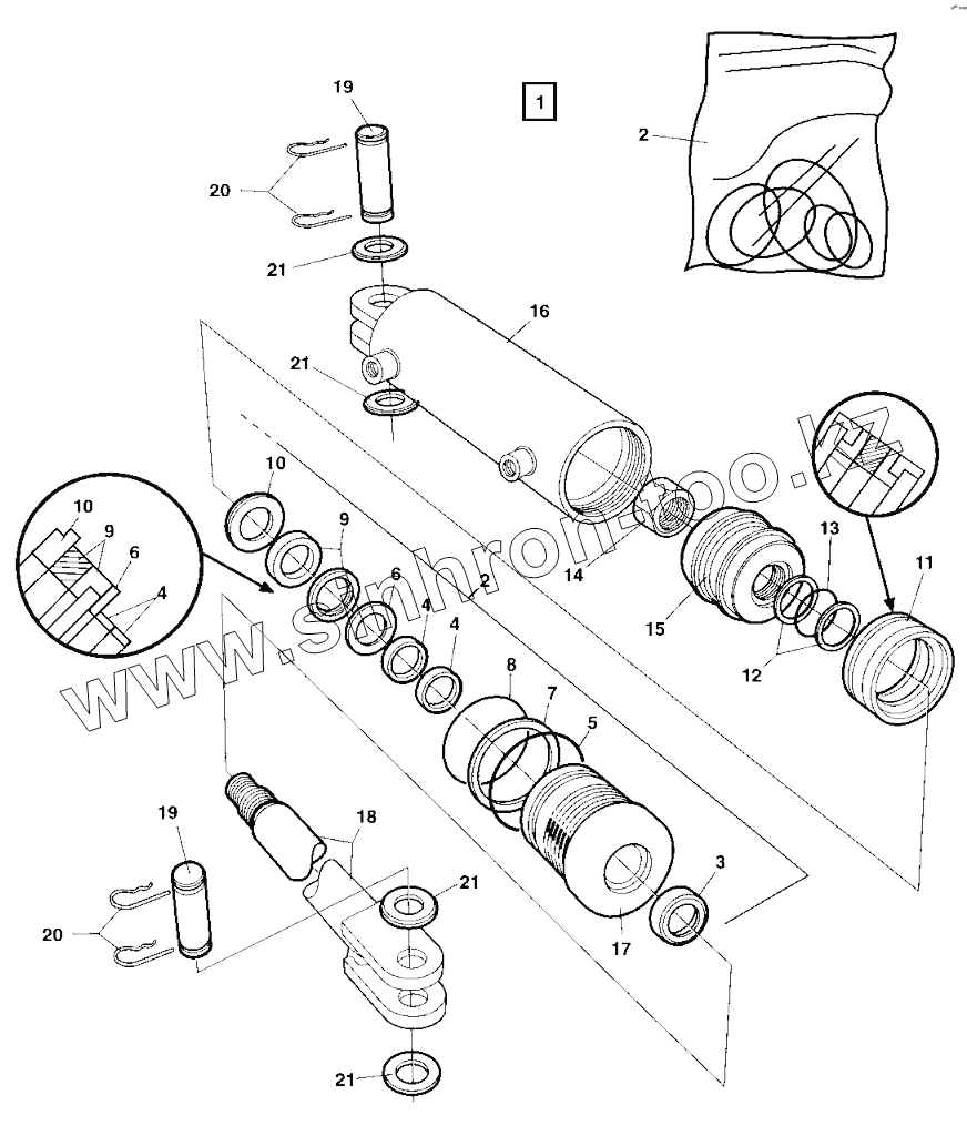 Каталог запасных частей к технике: DYNAPAC CA252D. 375031 Steering cylinder Up to 66X10572