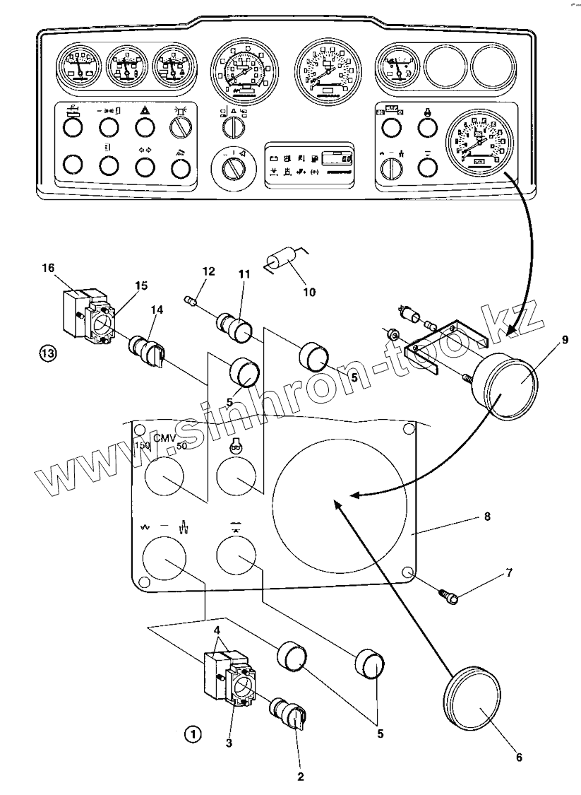 Каталог запасных частей к технике: DYNAPAC CA252D. Instrument panel Lower right