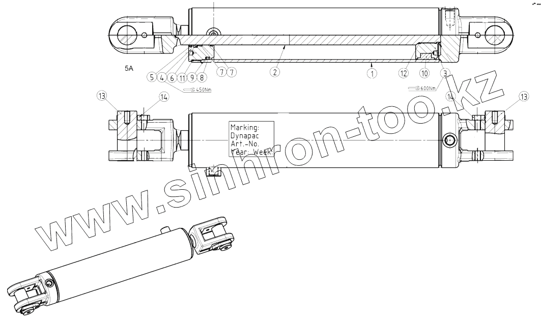 Каталог запасных частей к технике: DYNAPAC CA2800D. 4812121948 Hydraulic cylinder
