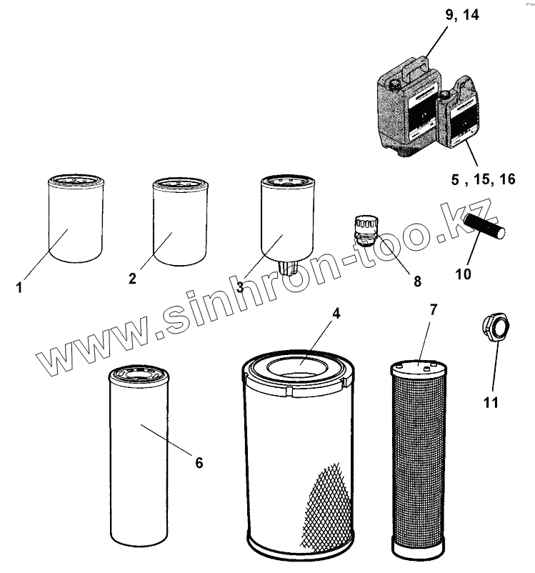 Каталог запасных частей к технике: DYNAPAC CA2800D. 4812158369 Service kit, 500h Cummins QSB 4.5