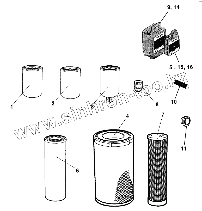 Каталог запасных частей к технике: DYNAPAC CA2800D. 4812160175 Service kit, 1000h Plus Cummins QSB 4.5