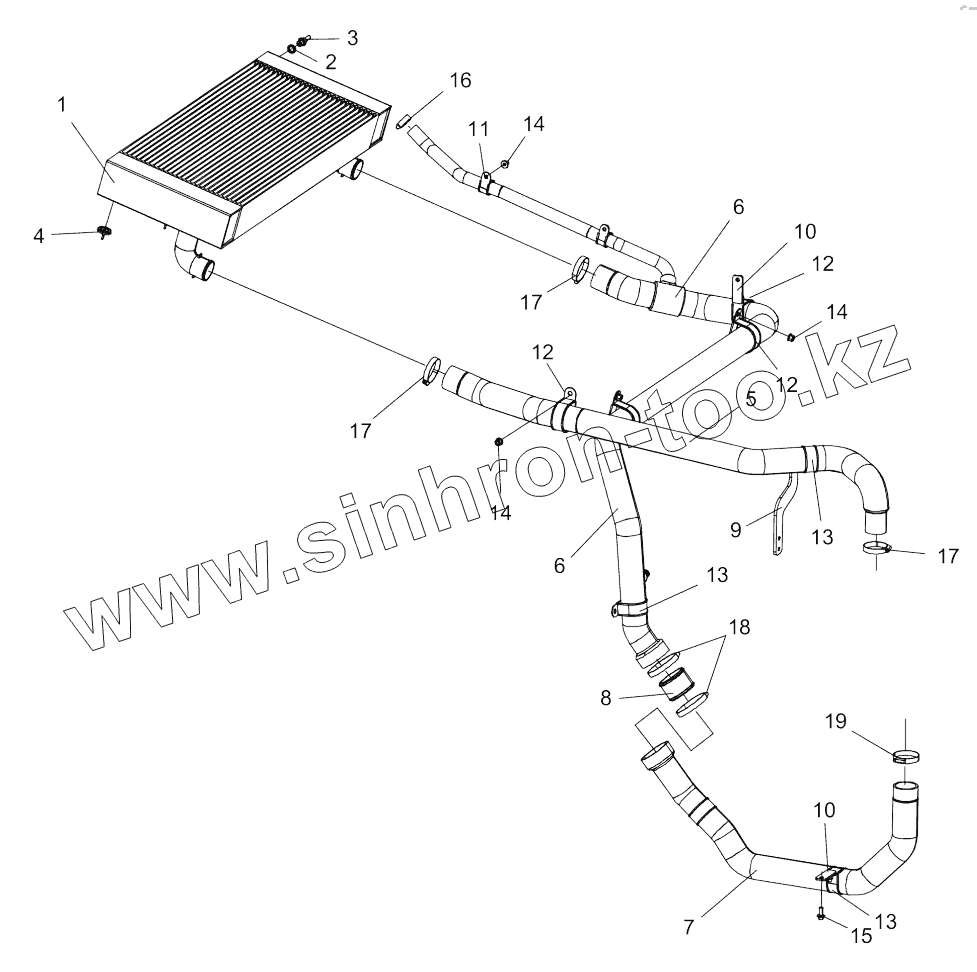 Каталог запасных частей к технике: DYNAPAC CA3500D. Water cooler and hoses