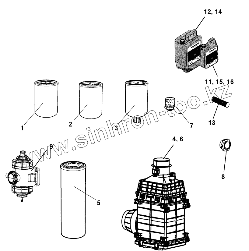 Каталог запасных частей к технике: DYNAPAC CA4000D. 4812158687 Service kit, 500h Plus Cummins QSB 4.5