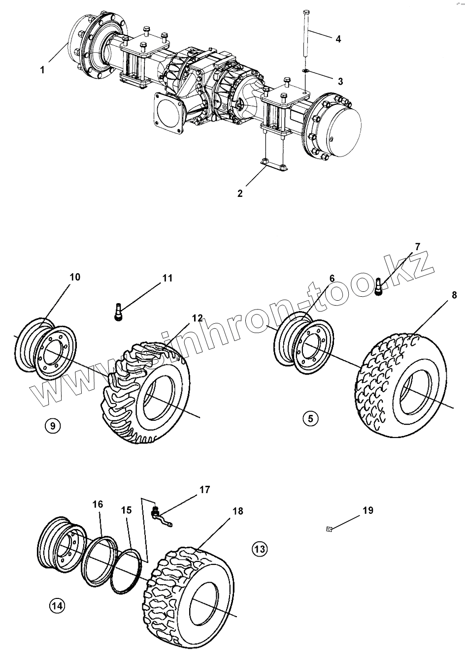Каталог запасных частей к технике: DYNAPAC CA5500D. Rear axle and wheels