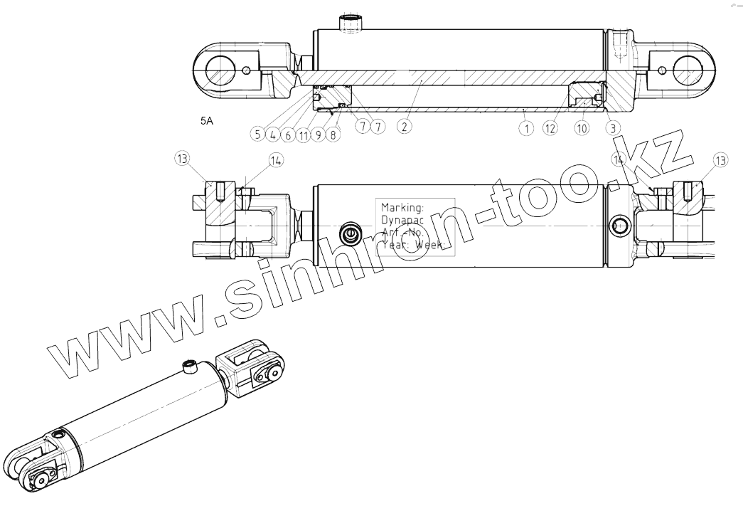 Каталог запасных частей к технике: DYNAPAC CA6500. 4812121947 Hydraulic cylinder