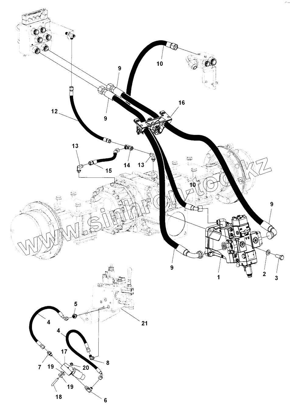 Каталог запасных частей к технике: DYNAPAC CA6500. Hydraulic system, rear axle Anti-spin option