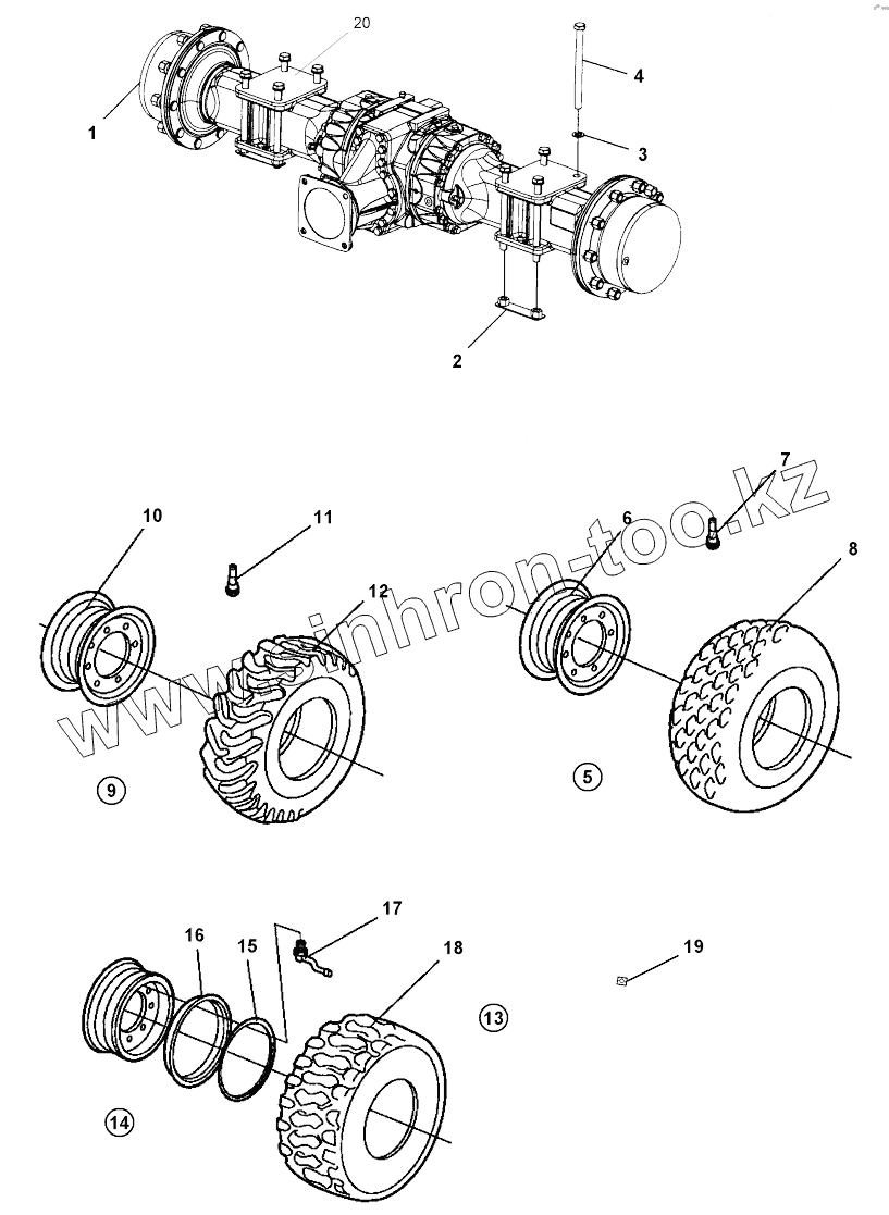 Каталог запасных частей к технике: DYNAPAC CA6500. Rear axle and wheels