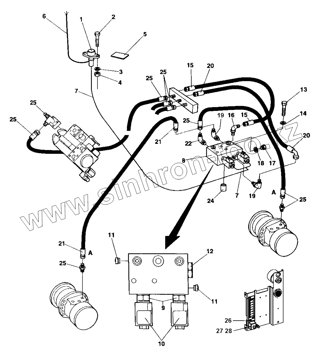 Каталог запасных частей к технике: DYNAPAC CC1100CC. Flow divider (option)