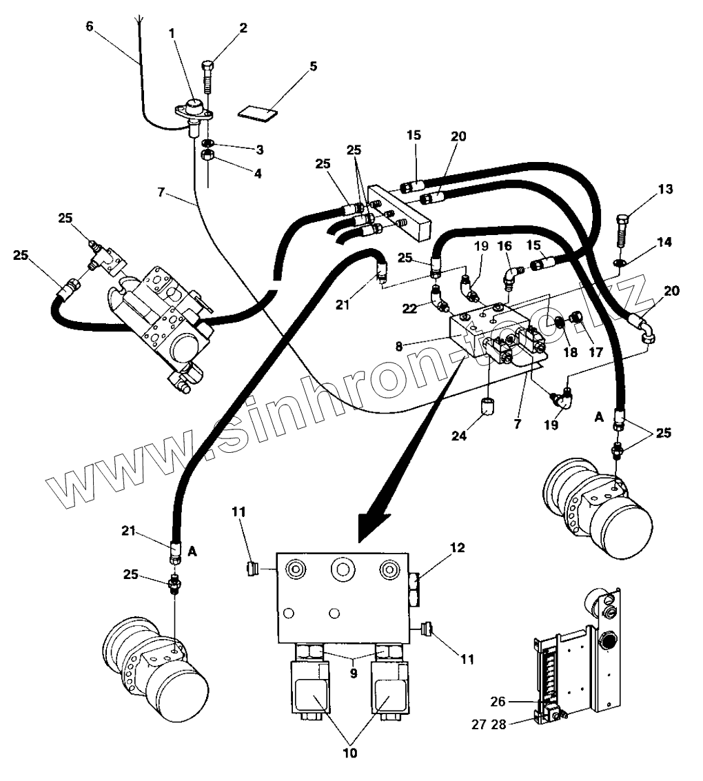 Каталог запасных частей к технике: DYNAPAC CC1200CC. Flow divider (option)