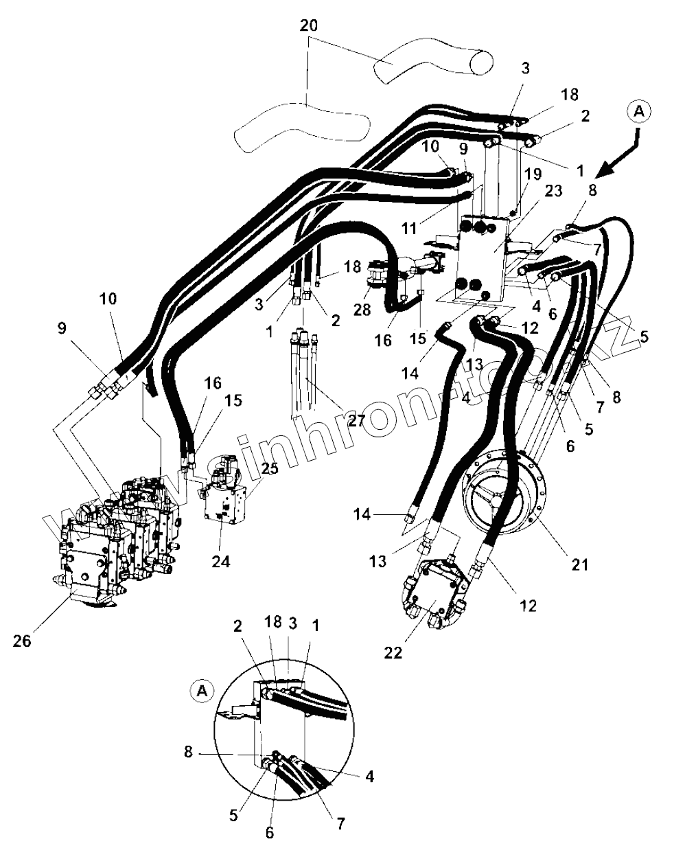 Каталог запасных частей к технике: DYNAPAC CC2200. Hydraulic system, rear drum offset