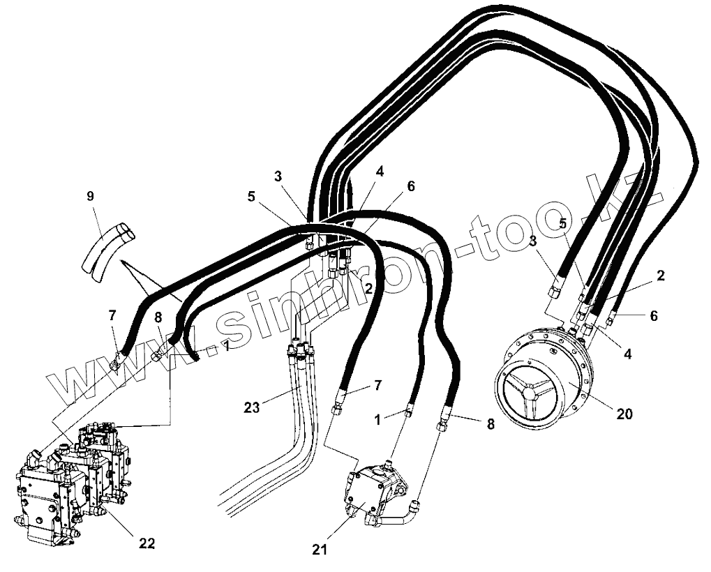 Hydraulic hoses, frame