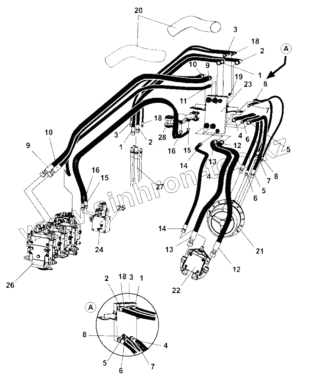 Hydraulic hoses, frame
