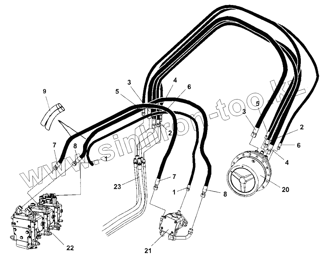 Hydraulic hoses, frame