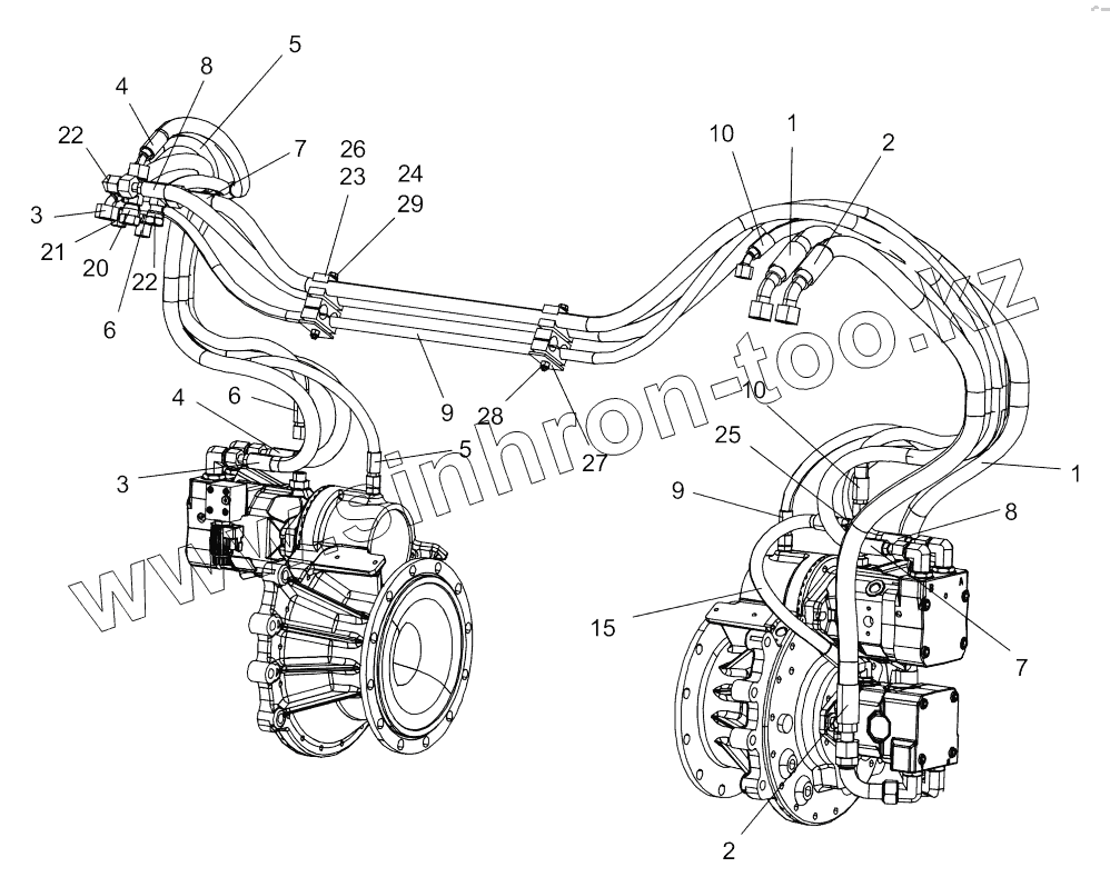 Каталог запасных частей к технике: DYNAPAC CC2300C. Hydraulic hoses, front drum
