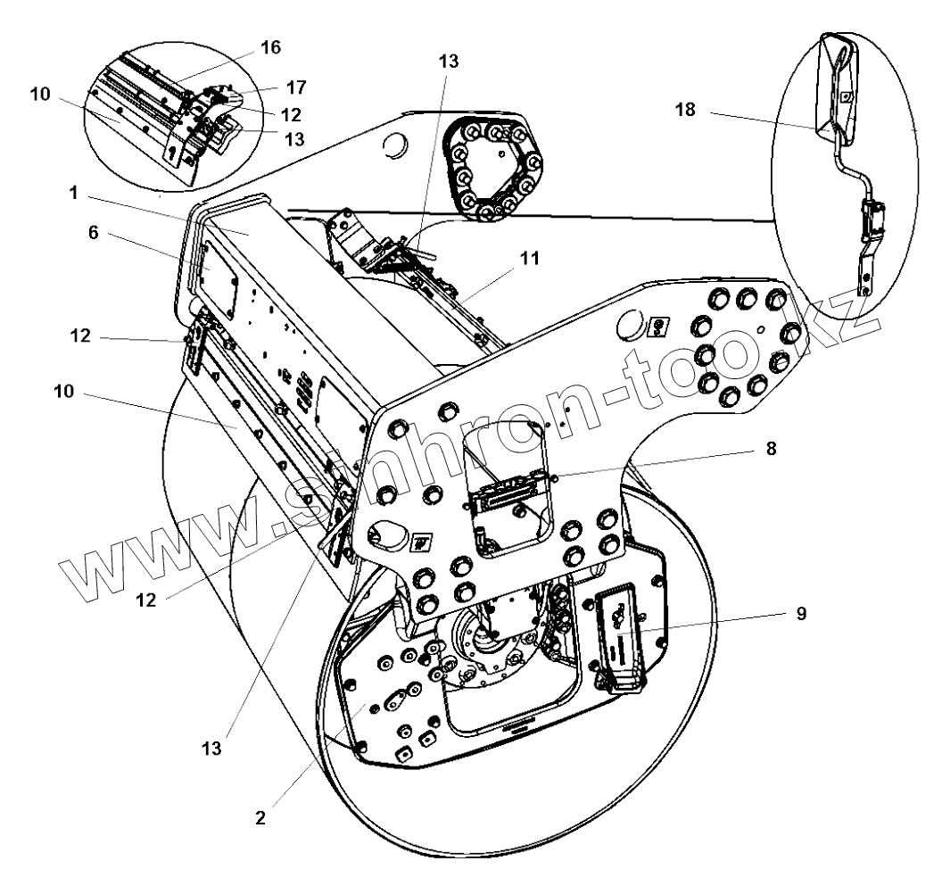 Каталог запасных частей к технике: DYNAPAC CC3300. End frame, front