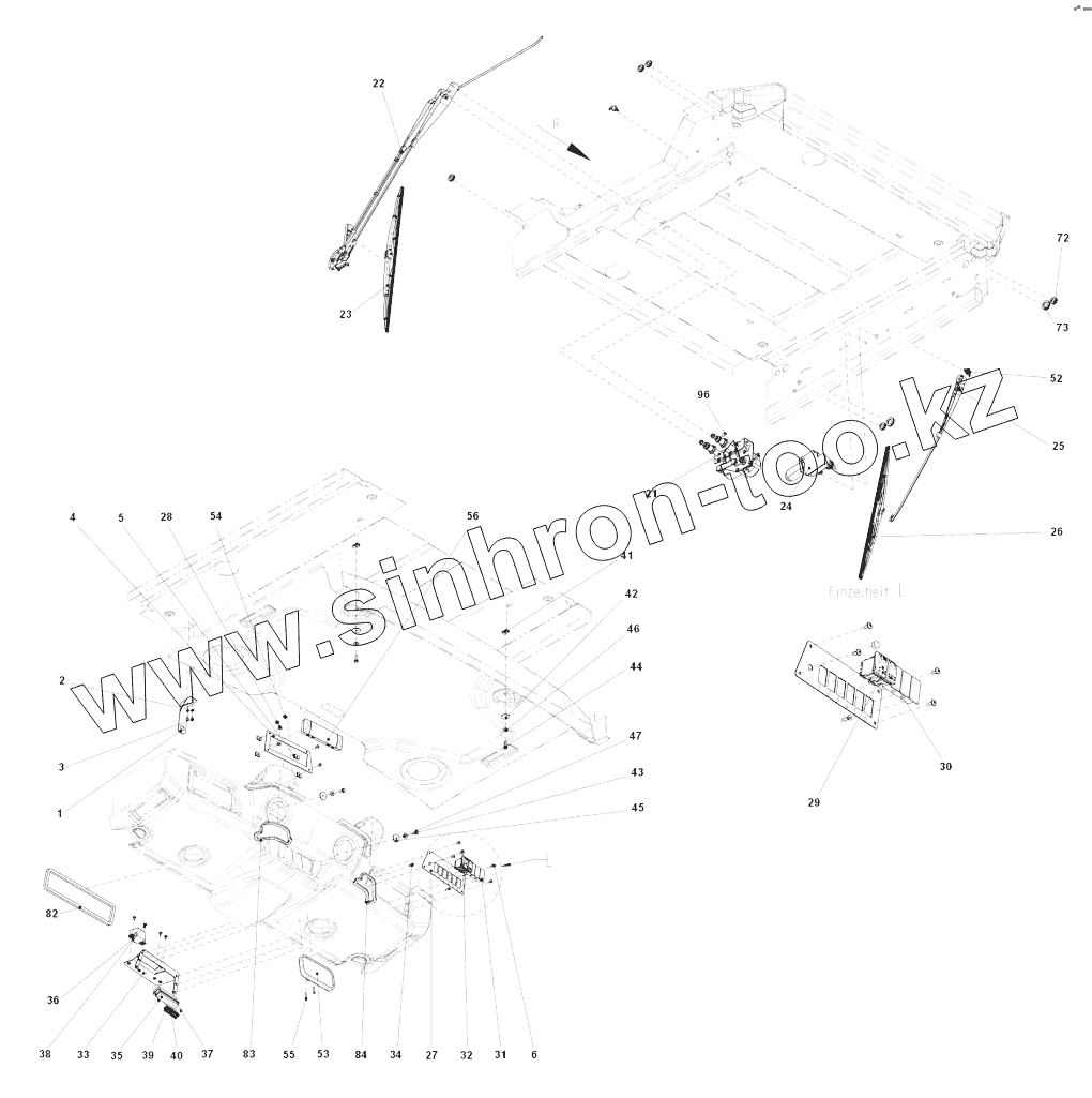 Каталог запасных частей к технике: DYNAPAC CC3300. Wipers front/rear and front ceiling